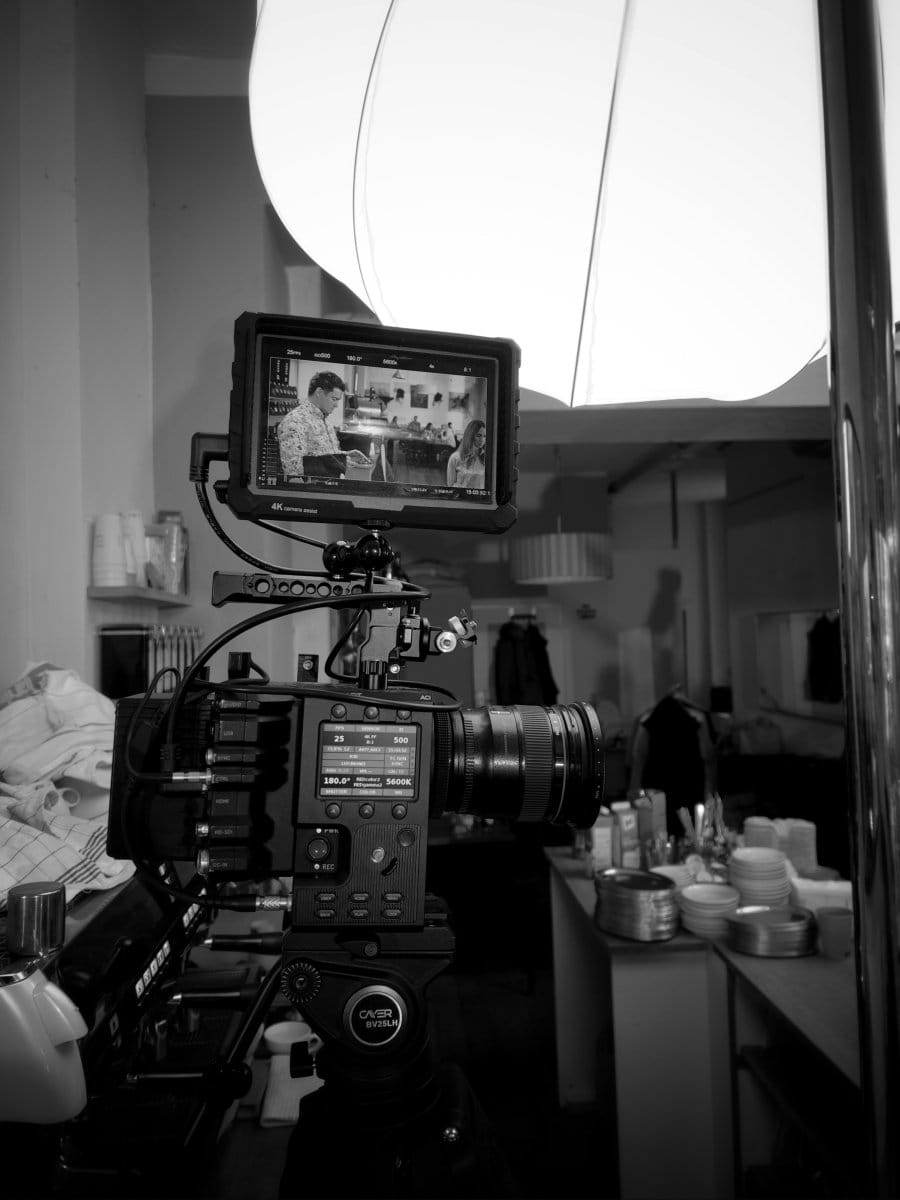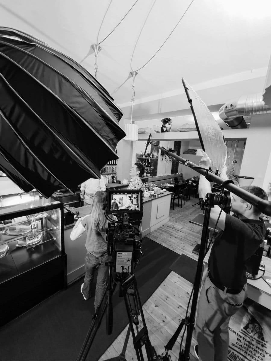 Der erste Drehtag startete im Café Humboldt. Hier entstanden zentrale Szenen für die Spots, die zeigen, wie einfach sich Invoicefetcher in den Arbeitsalltag integrieren lässt. Die Idee dahinter war klar: Wenn man es sogar entspannt im Café einrichten kann, dann überall. Neben den Hauptszenen haben wir hier auch mehrere Onboarding-Videos produziert. Dank zahlreicher Statisten wirkte das Café lebendig und genau so, wie man es sich vorstellt.